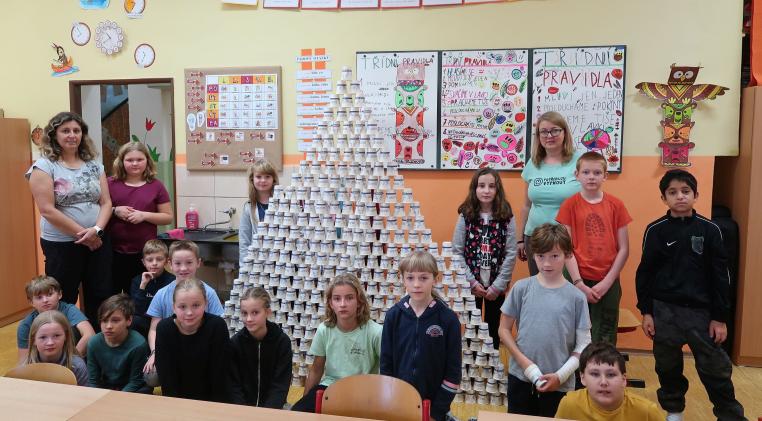 Ráno jsme si zahráli „pamatováka“ – měli jsme za úkol zapamatovat si deset věcí, které potom paní učitelky schovaly pod kelímky a my je museli zapsat. Nejvíc nás ale bavilo, když jsme ve skupinkách stavěli co nejvyšší kelímkovou pyramidu. Dvě byly dokonce vyšší než my! A protože jsme za každou aktivitu a soutěž sbírali korálky, proběhlo na závěr vyhodnocení a předání pamětních listů a diplomů těm nejšikovnějším.
