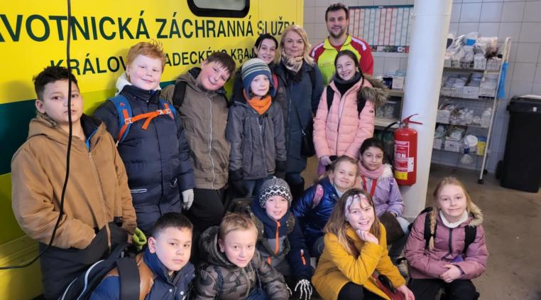 Hned po příjezdu nás přivítali profesionální záchranáři, kteří nám vysvětlili, jak funguje jejich práce a co všechno musí zvládat při záchraně lidských životů. Děti si měly možnost vyzkoušet první pomoc, včetně resuscitace, naučily se používat defibrilátor a zjistily, jak důležité je správně reagovat v krizových situacích.