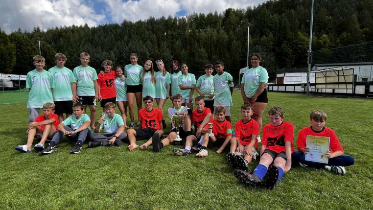 Naši fotbalisté dokázali v konkurenci čtyř dalších škol obhájit loňské prvenství a přivezli si opět putovní pohár. A jak tradice velí, hned po skončení turnaje svoji spanilou jízdu zakončili koupačkou v Úpě.