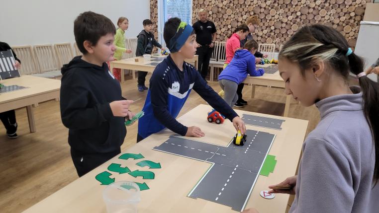 Nejdříve jsme třídili dopravní značky i jejich popisky. Následně jsme v menších skupinkách řešili různé dopravní situace a na počítačích nás čekaly úkoly z běžného silničního provozu.
