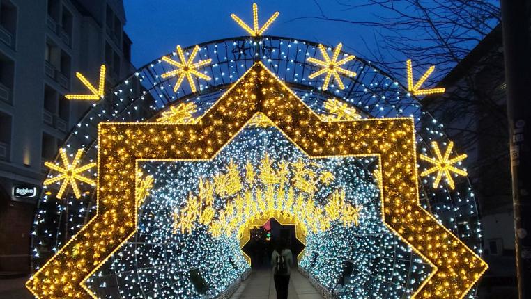 S nastupujícím soumrakem se trhy postupně rozsvěcely, úchvatným osvětlením ulic jsme se kochali i po cestě zpět k autobusu. Nejvíce nás nadchl světelný tunel a nádherně ozdobený Tumský most. Večerní zácpa nám cestujícím nevadila, užívali jsme si vánočních světýlek.