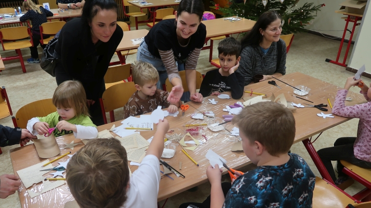 Děti mohly tvořit na sedmi stanovištích. Vyrobily si andílka z drátku, nazdobily si perníčky, kousky kartonu se v šikovných ručkách proměnily ve vánoční ozdoby, z vlny vykouzlily závěsného andělíčka na stromeček. Také si zhotovily vánoční přáníčko, vytvořily laminované záložky se zimními motivy, třpytivou hvězdičku na kolíčku a anděla ze vstupenky si domů odnesly jako zápich.