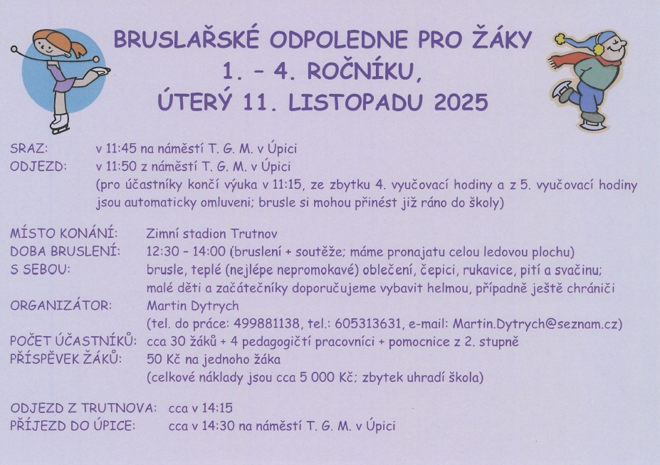 « Všechny akce akce již proběhla. Odpolední bruslení 1.–4. ročník 11. 11. 2025 | 11:50–14:30 « Diskopárty Odpolední bruslení 5.–9. ročník » Přihláška na bruslení tisk Přidat do kalendáře Kalendář Google iCalendar Outlook 365 Outlook Live