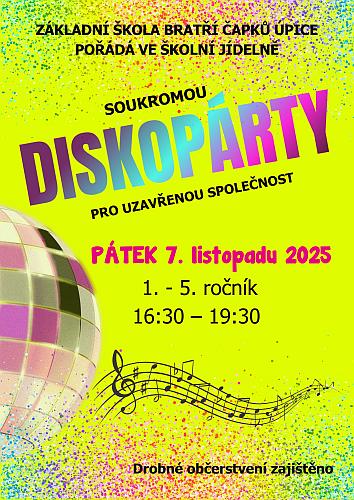 DISKOPÁRTY PRO UZAVŘENOU SPOLEČNOST PŘIHLÁŠENÝCH ŽÁKŮ